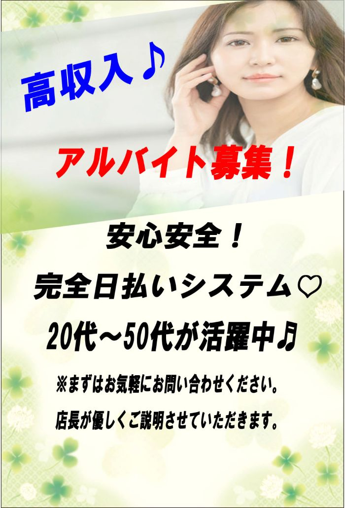| 給与 | 現金による完全日払い給与システム 自分次第で稼ぎUPも夢じゃない!! 日給30.000円以上可能 |